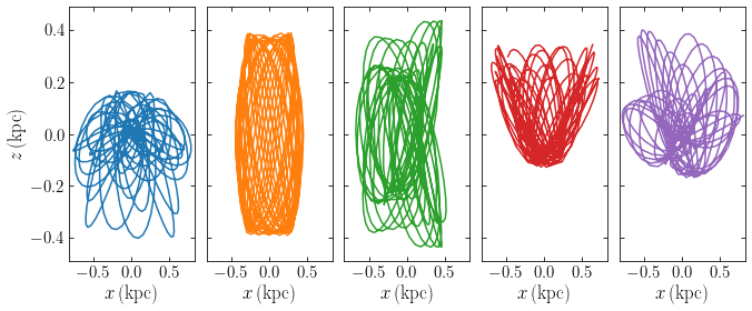 Some stars moving around in a triaxial potential. From Dynamics and Astrophysics of Galaxies, Jo Bovy.